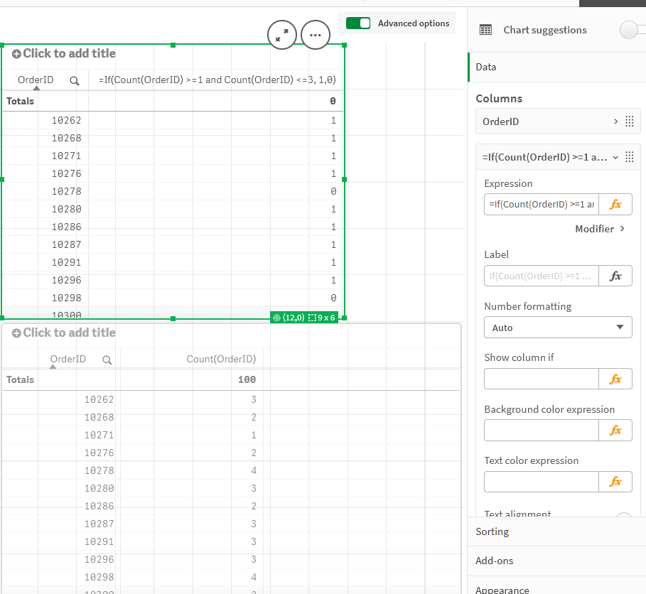 =If(Count(OrderID) >=1 and Count(OrderID) <=3, 1,0)