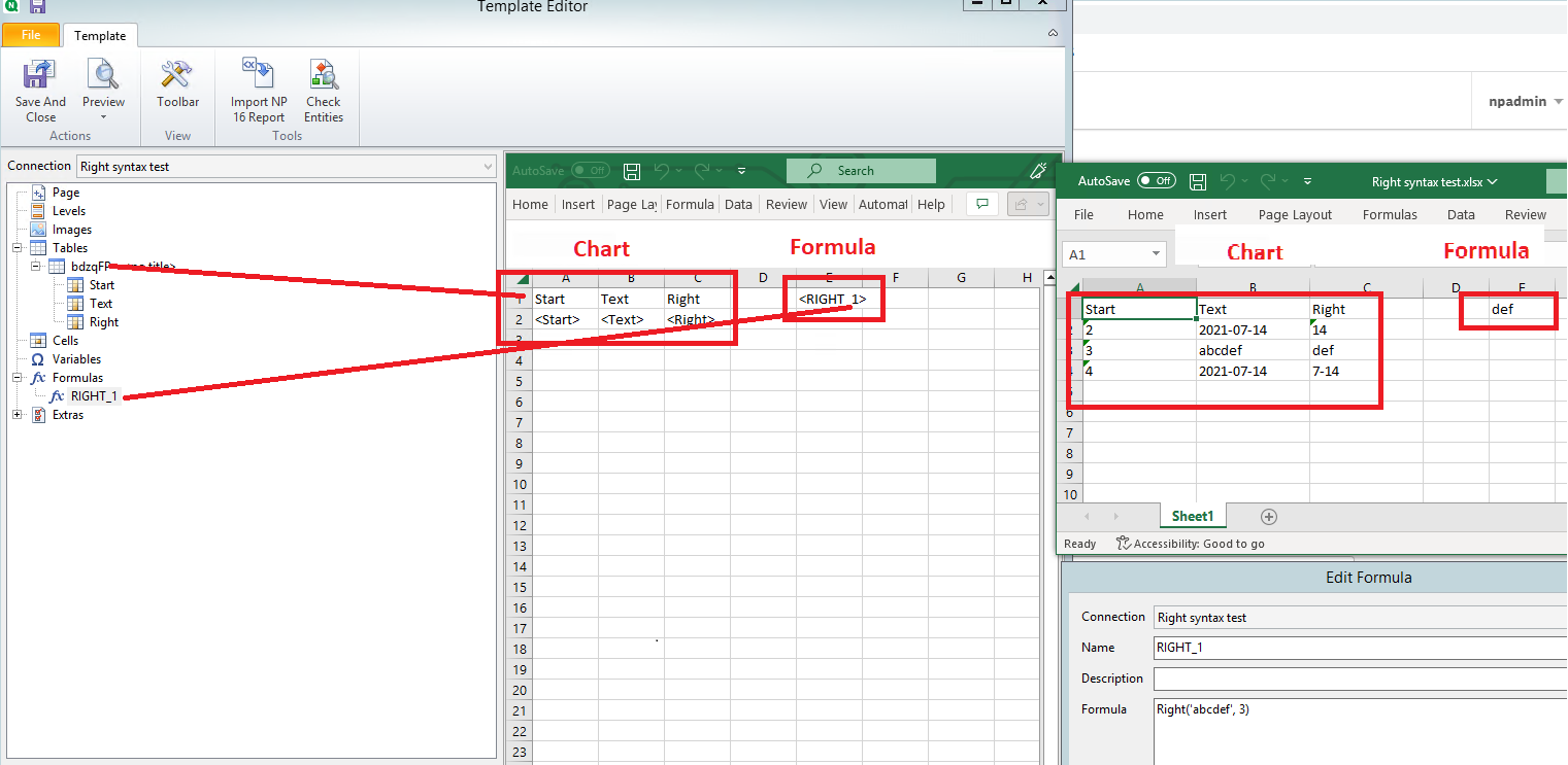 Not sure if this helps but here it is none the less with 'def' appearing in cell E1 in the report output.