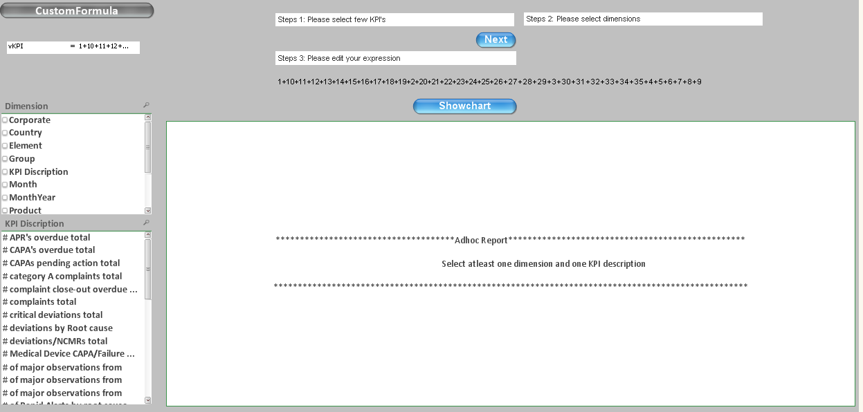 Step 1:  When user clicks on Custom formula button  Please Select few KPI textbox should display.