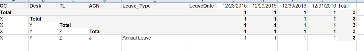 how do I show totals for rows in the pivot table? please