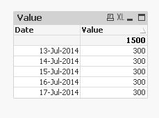 i have a following load inline table(1,2,3),i trying to get the out put in such a way that ,dates are same in all the table i need value feild should be added up i need to get 300 for each date,can i get the expression