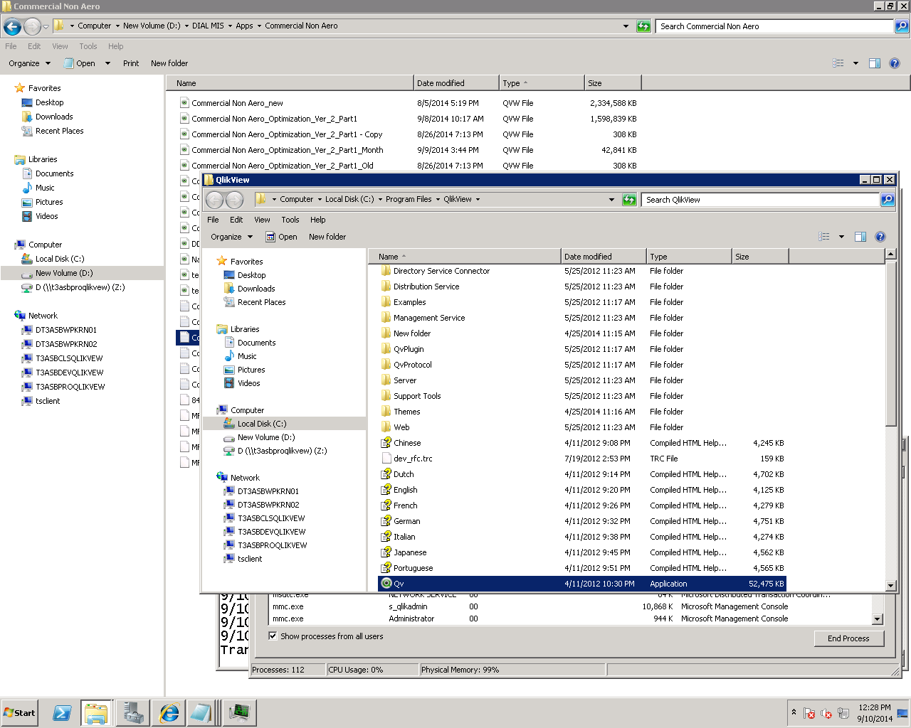The second images show the qlikview file (the engine) while the first shows the tasks running with the executables, there are two, one running with admin, and another running with a user