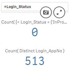first text box expression: Count( {< Login_Status = {'InProcess'} >} Distinct Login_AppNo )